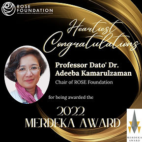 Heartiest congratulations to Professor Dato' Dr. Adeeba Kamarulzaman, Chair of ROSE Foundation for being awarded the 2022 Merdeka Award.